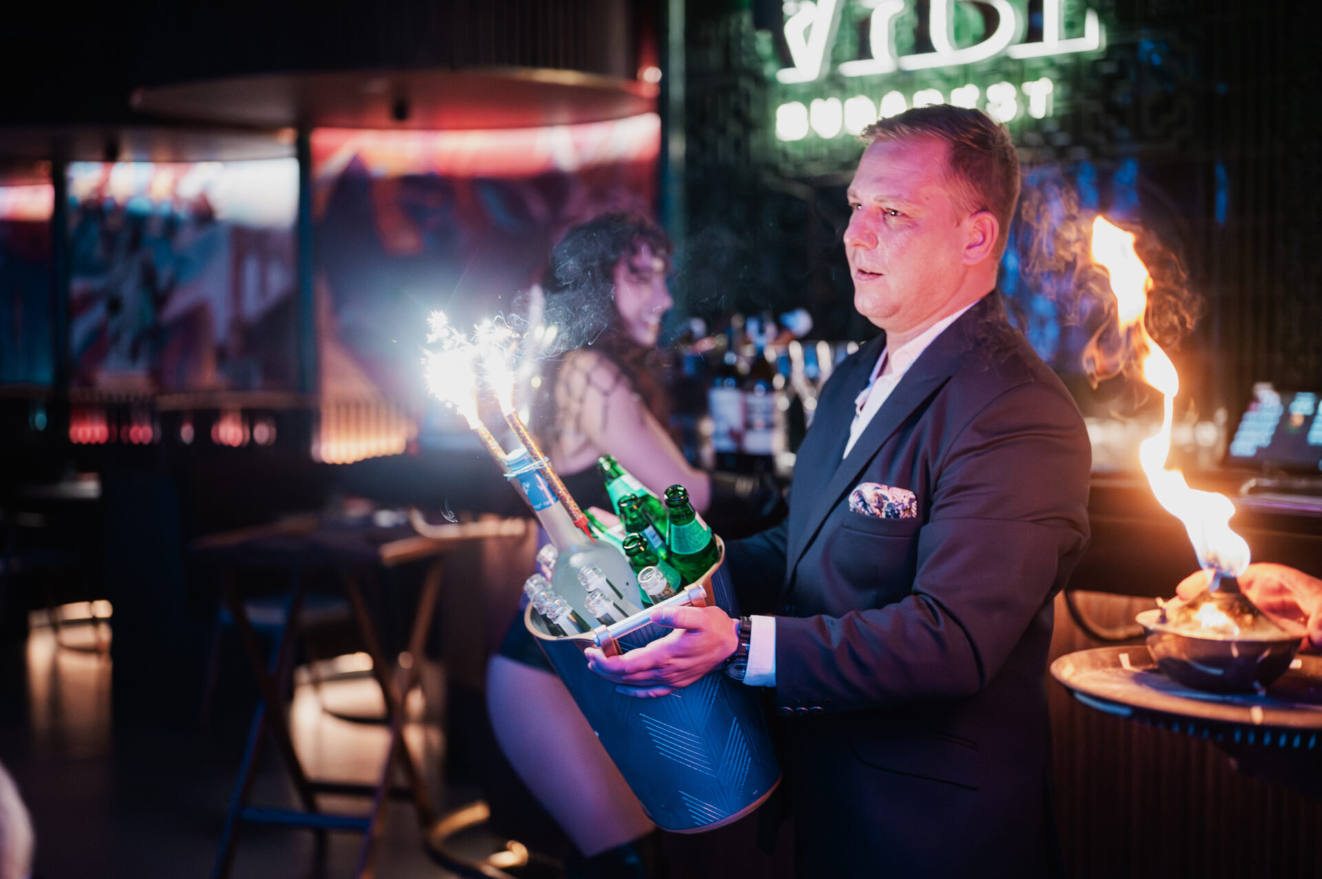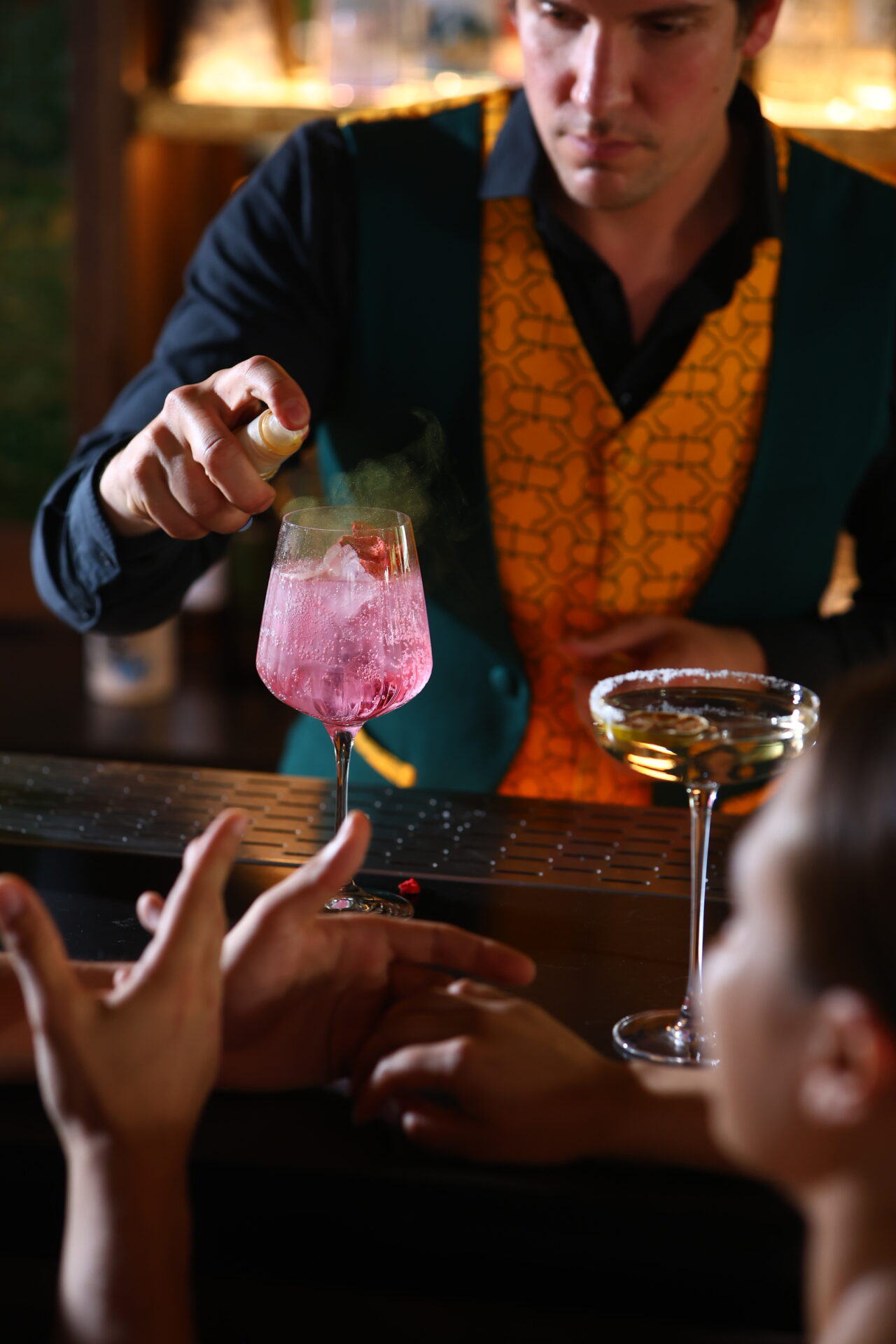 A bárpultnál foglalva helyet nem csak italt kapsz, hanem egy teljes élményt: a táncosok, akrobaták és élő DJ-szettek szó szerint körülötted kelnek életre, miközben világszínvonalú bartenderek keze munkáját kóstolhatod. Közöttük Marc Alvarez, a világ egyik legelismertebb mixológusa, akinek víziója tette a VIBE-ot Budapest egyik legizgalmasabb ízlaborjává.